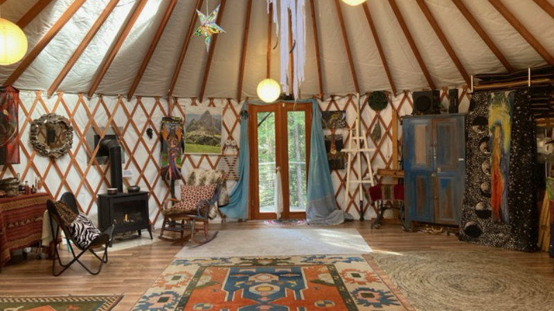 There are plenty of tent-camping sites, in the shade. There are a handful of options for a bed, with priority to elderly and disabled individuals. There is an option for folks to sleep in the yurt.